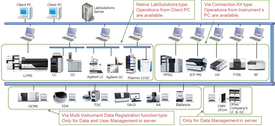 Unified software platform for Shimadzu HPLC,GC,UV,IR,RF, ICPMS, LCMS, Agilent LC/GC and Thermo LC/GC